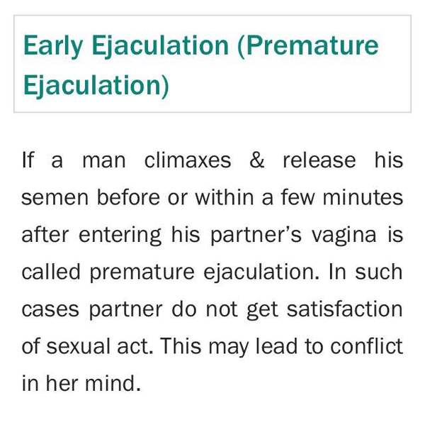 View DetailsEARLY EJACULATION ( premature ejaculation ) may spoil your sexual pleasure.... Treat it in proper t